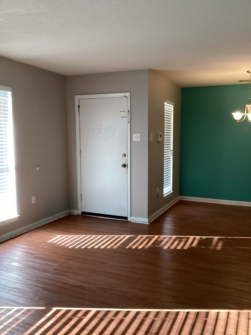 This home features updated paint with accent walls, so this spot stands out! Laminate flooring throughout keeps everything modern and clean, along with an open concept living/dining area.